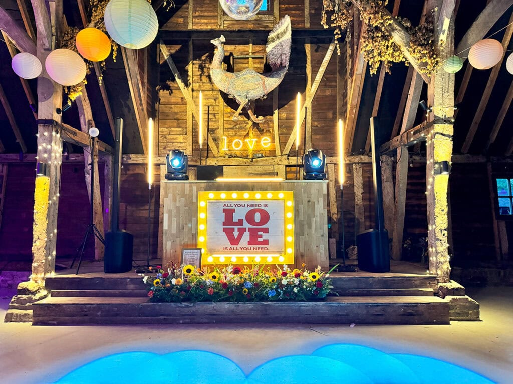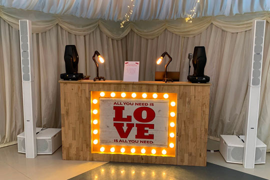 Wedding tastes are constantly changing whilst there’s nothing wrong with the usual white bling DJ set up it’s nice to be able to offer something different and offer an alternative that would better fit couples something that fits there rustic themed weddings which I’m lucky enough to play at.